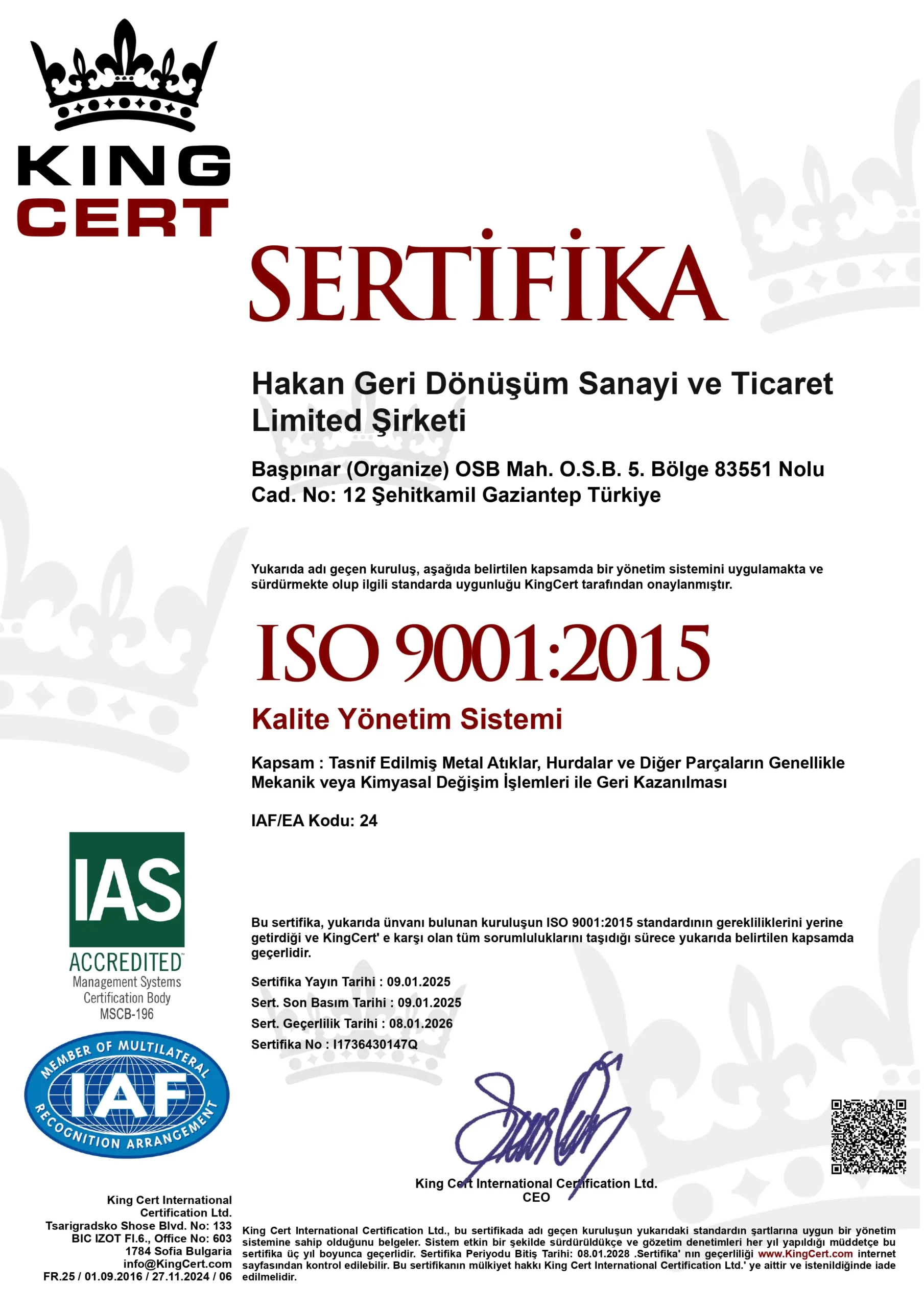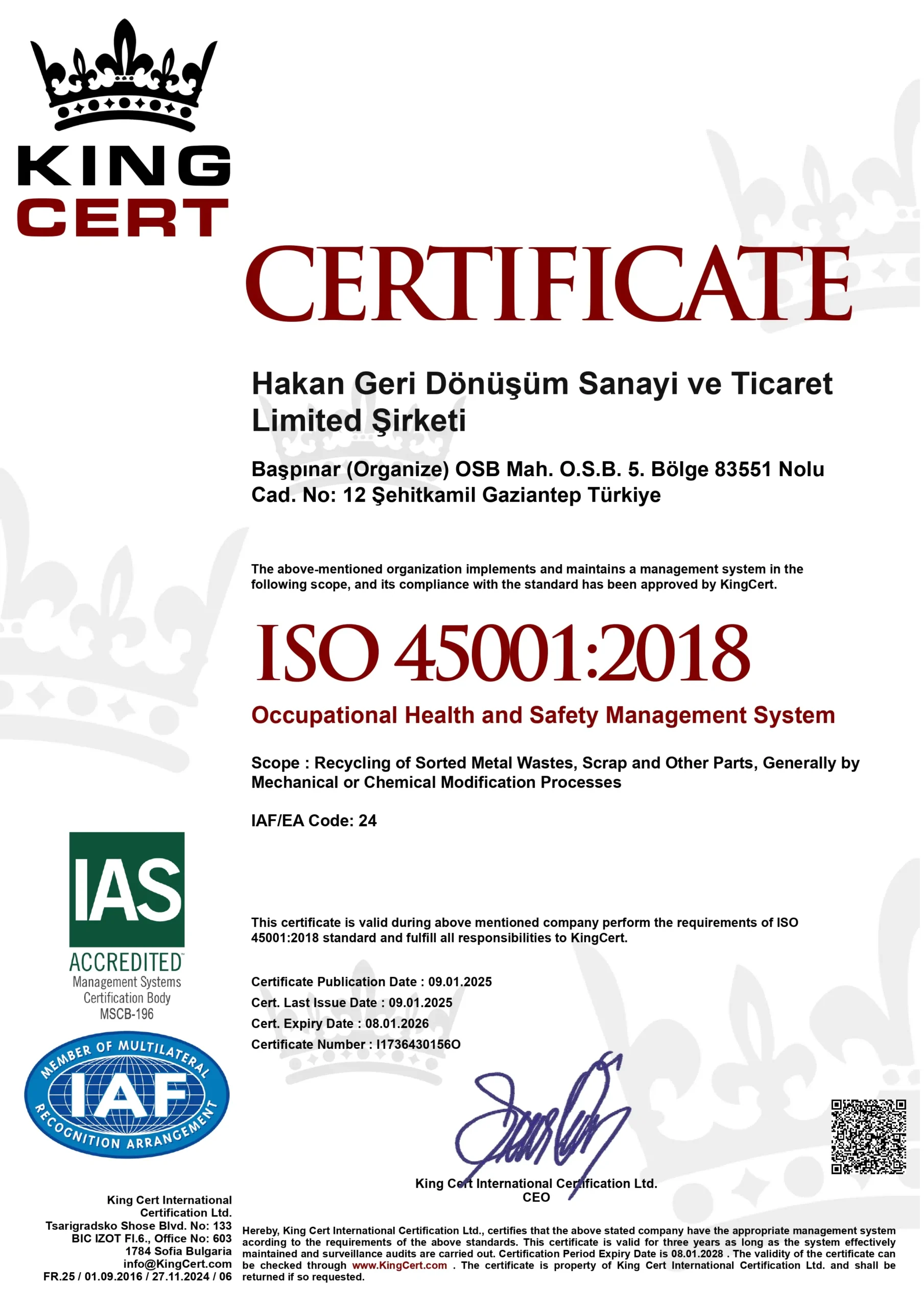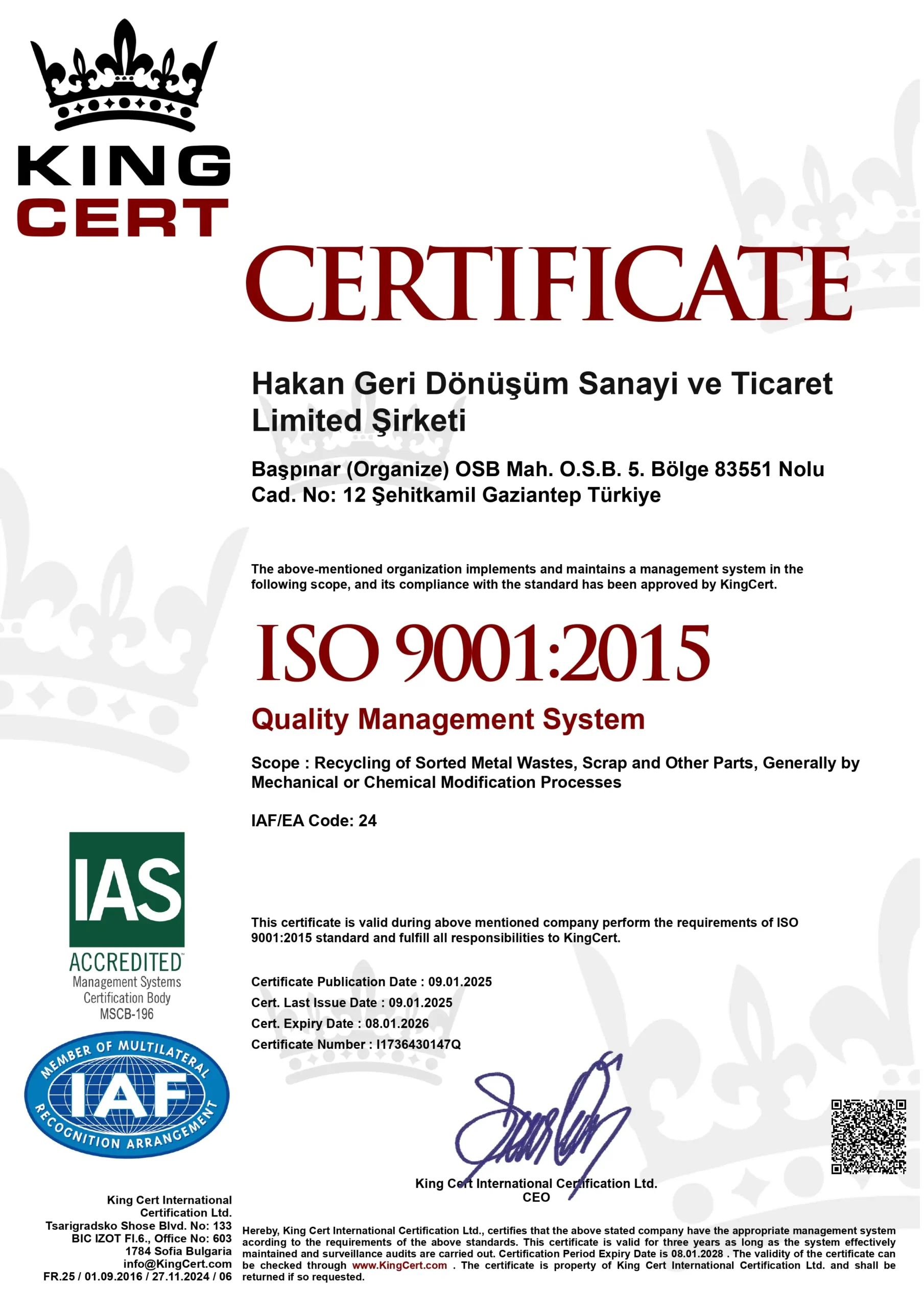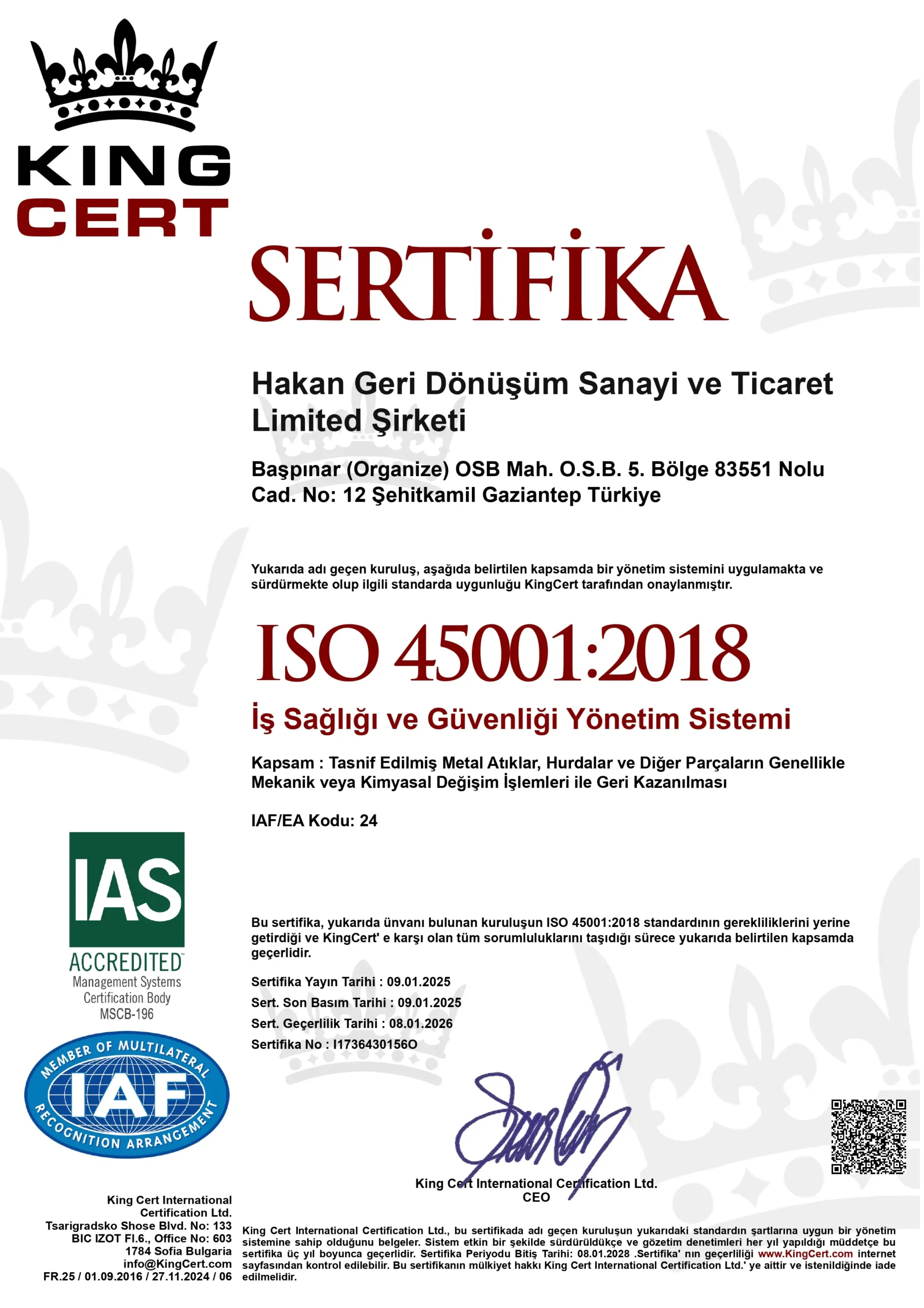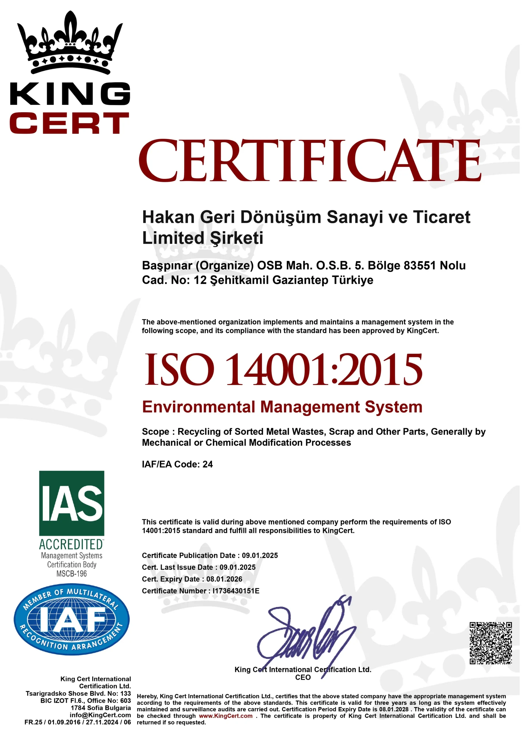 Sertifikalar Ana sayfaSertifikalar ISO14001 ISO14001 ISO45001 ISO45001 ISO9001 ISO9001 Scope Certificate